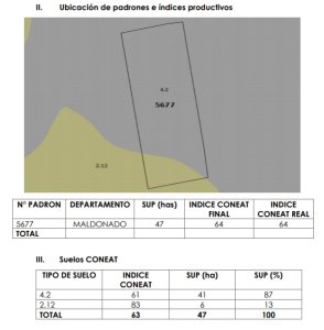 - DEPARTAMENTO: Maldonado - PARAJE: Garzón - SECCIÓN JUDICIAL: 6ta - SUPERFICIE TOTAL: 47 hectáreas. Fracción de campo en Maldonado. Paraje del Camino Arco del Sol (Garzón). Son 48 has de campo ganadero apto para usos diversos como recreación, cría de caballos, olivos, etc. Ubicada sobre Camino Vecinal a 10 minutos de Ruta 9. Precio: 6800 USD la hectárea Comisión de Intermediación, 3% más Impuestos sobre el valor de venta. Para mayor información o visitar la propiedad, no dude en contactar con nuestros asesores.