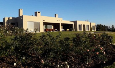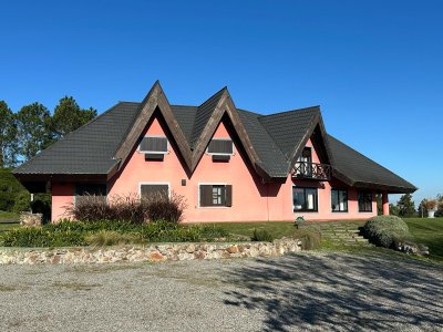 Esta espectacular propiedad reúne lo mejor del paisaje rural de Maldonado con una infraestructura completa y de alto nivel. Son más de 15 hectáreas donde conviven olivares, lagos, huerta, áreas recreativas y edificaciones cuidadosamente diseñadas, ofreciendo una experiencia única de vida en el campo a tan solo minutos de Punta del Este. La casa principal, de 351 m², está construida con materiales nobles y detalles arquitectónicos que conjugan elegancia, historia y confort. Sus puertas antiguas, techos altos, ventanales generosos y ambientes amplios le otorgan una atmósfera cálida y luminosa. Cuenta con hall de entrada, living con gran chimenea, comedor y cocina con salida a patios exteriores. En planta principal hay 2 dormitorios que comparten un espacioso baño, mientras que el subsuelo alberga otros 2 dormitorios adicionales y un depósito. Una escalera de piedra y madera conecta con el playroom en planta alta y la terraza, desde donde se disfrutan impactantes vistas a los olivares. Alrededor de la casa se extienden decks de madera curada, pérgolas, una galería techada con cañas, parrillero, living exterior y una piscina climatizada de 16 x 6 metros. El entorno está perfectamente integrado: 3.500 olivos de 7 variedades diferentes, con 5 años de crecimiento, caminería interna de balastro, tajamares, un lago artificial, sector de juegos para niños, caballerizas, huerta y monte de frutales. A nivel de servicios, la propiedad dispone de 2 galpones de 300 m² cada uno, casa de caseros con 2 dormitorios, baño, cocina, comedor, lavadero y galería techada, además de cuarto de servicio y gran depósito para maquinaria y herramientas. Consulte con nuestros asesores.