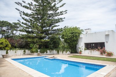 Chalet en Punta del Este para 6 personas. Dos plantas, pileta y barbacoa. Excelente ubicación en barrio residencial a 3 cuadras de la playa y minutos del centro de Punta del Este y de Maldonado. Totalmente equipada y con todos los servicios. El espacio La casa se encuentra en un predio verde y arbolado, en esquina con frente a dos calles. Los arbustos y los árboles ofrecen privacidad. La construcción se desarrolla en dos plantas. La planta alta cuenta con 3 dormitorios y un baño completo. Uno de los dormitorios es un matrimonial con un balcón esquinero con vistas al jardín y a la pileta. Los otros dos dormitorios cuentan con capacidad para dos personas cada uno y tienen vista al frente uno y a la pileta el otro. La planta baja cuenta con una cocina totalmente equipada, comedor, un amplio living con estufa a leña y baño completo. Todos los ambientes son muy luminosos y con vistas al predio. La barbacoa cuenta con un parrillero cerrado, horno de pan, cocina, heladera, pileta para los platos y mesa para cocinar al igual que todos los utensilios de cocina. La barbacoa cuenta también con una habitación con baño, con capacidad para dos personas. El perímetro es cerrado y la casa cuenta con alarma con central de monitoreo. Es una casa ideal y muy cómoda para disfrutar en familia. No dudes en consultar