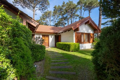 En el corazón de San Rafael, uno de los barrios más encantadores y residenciales de Punta del Este, se presenta esta elegante casa que combina confort, diseño y funcionalidad en un entorno verde y tranquilo. La propiedad ofrece una amplia área social donde el living, comedor y estar se integran visualmente, manteniendo al mismo tiempo espacios bien definidos que permiten disfrutar de distintos ambientes dentro de un mismo marco armónico. Una estufa a leña aporta calidez y un toque acogedor, creando el escenario ideal para disfrutar durante todo el año. La cocina, práctica, luminosa y con doble circulación, se destaca por su funcionalidad y comodidad, perfecta tanto para el uso diario como para recibir invitados. En el área privada, la casa cuenta con dos dormitorios y dos baños (uno en suite), además de una máster suite amplia y confortable, pensada para el descanso y la privacidad. La propiedad se completa con toilette, dependencia de servicio con baño, un sector especial con jacuzzi para momentos de relax, y una buhardilla funcional que puede adaptarse como espacio de guardado o área de recreación. El garaje, de generosas dimensiones, permite estacionar dos o más vehículos con total comodidad. En el exterior, un jardín cuidadosamente diseñado rodea la vivienda, mientras una galería con pérgola y parrillero ofrece el marco ideal para disfrutar del aire libre, reuniones familiares o atardeceres de verano en un entorno de paz y naturaleza. Una residencia que equilibra elegancia, confort y practicidad, en una ubicación privilegiada, a minutos del mar y de todos los servicios que hacen de San Rafael un lugar único para vivir o vacacionar en Punta del Este.